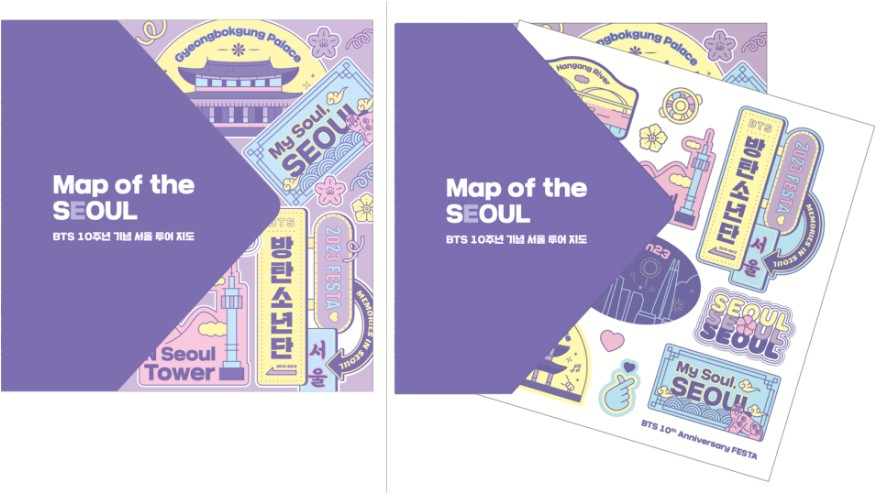 데뷔 10주년 기념 페스타(2023 BTS FESTA)를 맞아 방탄소년단 멤버들과 관련이 있는 연습생 시절 추억의 장소, 다양한 출연 프로그램의 촬영지 등 서울 명소 13개가 포함된 서울방탄투어 지도가 제작되었다.